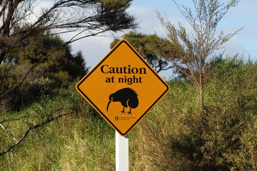 Hier ist des nachts der gemeine Kiwi am Grasen.