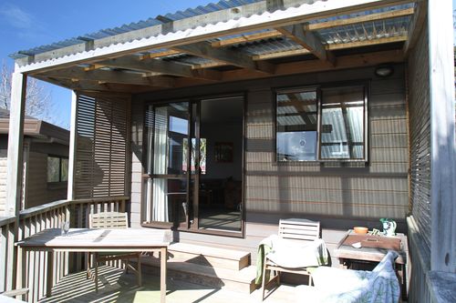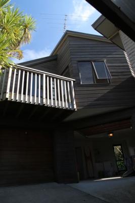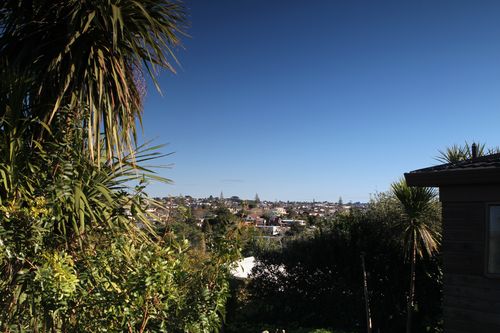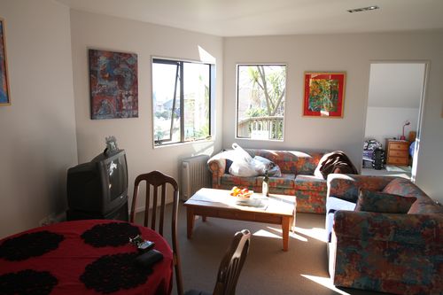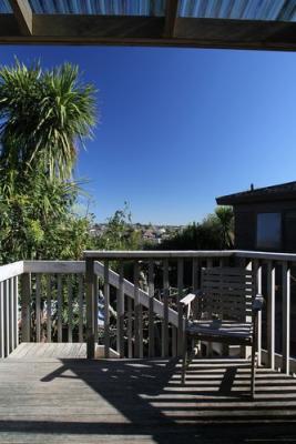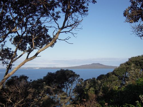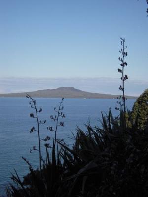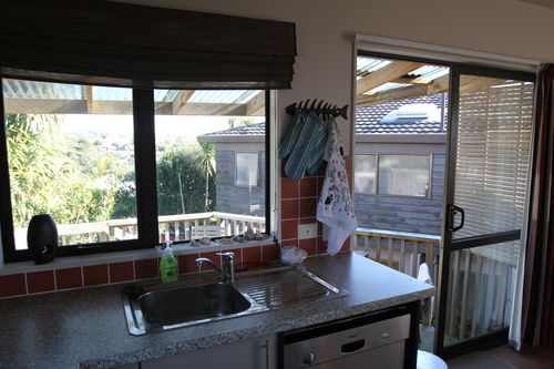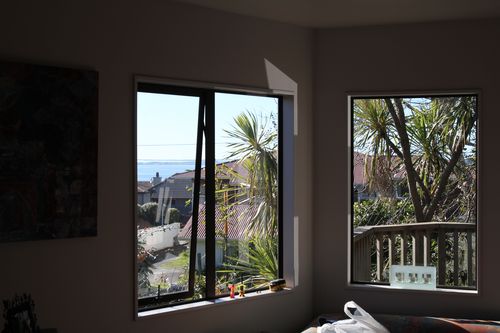 Aus dem Eckfenster heraus hat man einen schönen Blick aufs Meer und auf Rangitoto Island