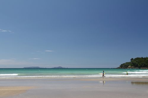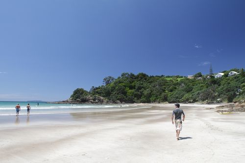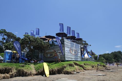 Unser "local" Robin hat uns dann gegen Mittag durch die Gegend geführt. 1.Stopp: Sandy Bay in der Nähe von Matapouri. Hier lief gerade ein Longboard-Surfcontest.