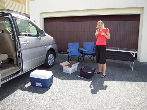 Tisch, Stühle, Besteck, Geschirr, Kühlbox. Et kann losgehen!