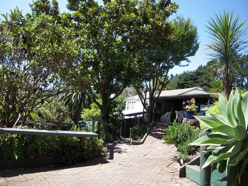 Eines der ältesten Betonhäuser Neuseelands, ca. 1870. Damals gabs keine Straße! Alles musste per Boot angeliefert werden, der Beton enthält Steine und Muscheln vom Strand. Tolle, 3m hohe Decken und kühle Räume. Der örtliche Ranger war zufällig da und hat uns durch das Haus geführt, in dem er auch ein Büro hat. Er mag sein kühles Büro! Da fragt man sich, warum hier nicht mehr Häuser aus Beton gebaut werden.