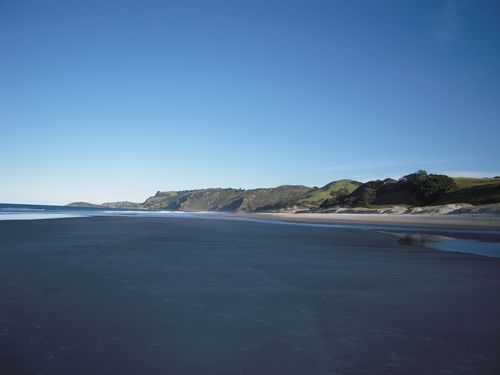 Auf dem letzten Bild sieht man unser nächstes Ziel: der lange Sandstrand Pakiri Beach. Wir finden das ist einer der schönsten und einsamsten Strände Neuseelands. Dort gibt es zudem einen tollen Stellplatz für den Campervan. Den Schlafplatz kannten wir schon von vor 5 Jahren. Der Parkplatz liegt geschützt in Strandnähe und verfügt über ein eigenes Klohäuschen, fliessendes Wasser und Umkleidekabinen!