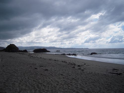 Wir haben unsere Wanderung in Anchor Bay gestartet und sind von dort aus zunächst im Regen entlang der Küste gelatscht.