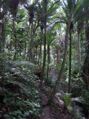 Nachdem wir die Hälfte der Wanderung an der Küste entlang liefen, ging es in dichten, urwüchsigen Dschungel mit jede Menge Vögeln