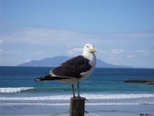 Der Magen knurrte bedächtigt und da man fürs Schnorcheln ein paar Reserven braucht, haben wir kurz vorm Ziel einen kurzen Futterstopp eingelegt. Das kleine Restaurant mit Meerblick und angeschlossenem Schulraum für Meeresbiologie und Aquarien war ein Tipp der Touristiformation-Lady aus Matakana. Sehr zu empfehlen! http://www.seafriends.org.nz/index.htm