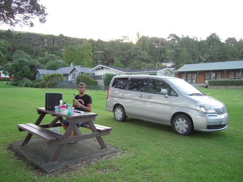 Nach einem netten Abend in der nahe gelegenen Tussock Bar mit Dinner und der Vergabe spaßiger Awards ging der Club ins Bett im schicken Chateau und wir in unseren auf dem gegenüberliegenden Campingplatz geparkten Van.