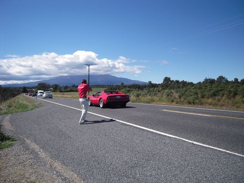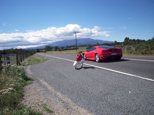Am Samstag gabs eine schöne Ferrari-Ausfahrt um den Mount Ruapehu herum bis Ohakune zum Lunchbreak. Gina und Marsha haben die nahe dem Hotel gelegenen Wasserfälle erkundet und ich durfte mit im Ferrari heizen. Danke Marsha & danke Gina!