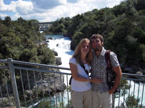 Nach einem kurzen Lunchbreak in Taupo sind wir zu einer von Marshas Lieblingsstellen in NZ gedüst, die Graham und Gina auch noch nicht kannten: Die Aratiatia Rapids. Die eigentlichen Stromschnellen sind durch einen Damm vom Wasser getrennt, aber drei mal am Tag werden diese geflutet. Das Schauspiel ist atemberaubend!