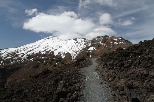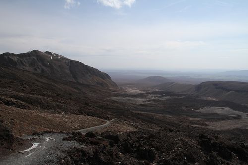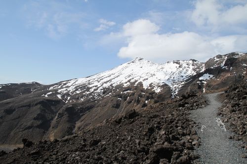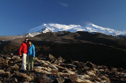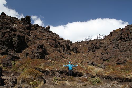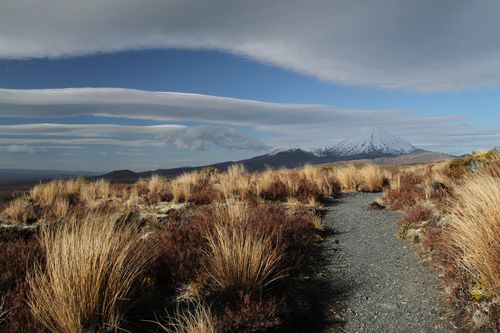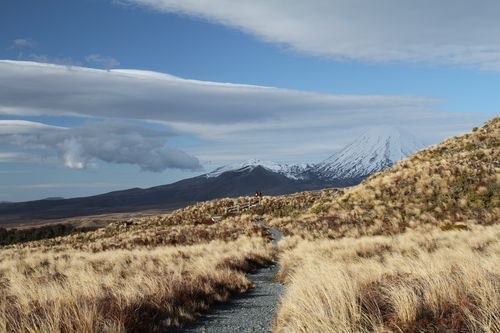 Bis hier hin und nicht weiter - zu viel Wind, aber ein schöner Blick auf Mt. Tongariro.