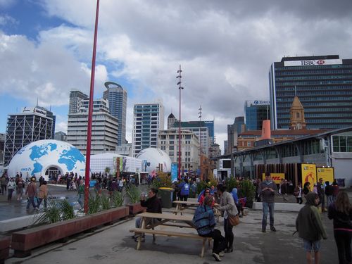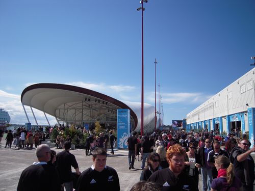The Cloud, eine temporäre Eventlocation auf der Fanmeile - schicki und direkt am Meer. Innen drin gabs Ausstellungen über Neuseeländische Erfindungen.