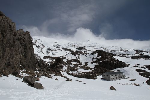 Und weil wir noch nicht genug hatten haben wir uns noch im Tongariro Crossing versucht. Wir wussten bereits, dass wir höchstens bis zur Hälfte kommen würden, wegen großen Schneefeldern und gefährlichen Windgeschwindigkeiten. So sind wir bis auf den ersten Sattel gekraxelt, ab da wurde es zu windig.
