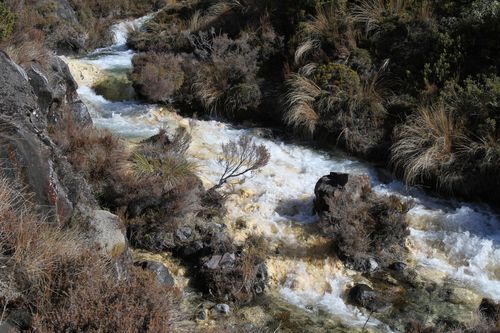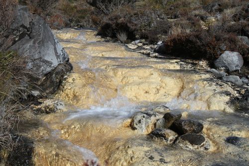 Nachdem et mit dem Skifahren nix gegeben hat sind wir noch zu den Silica Rapids gewandert. Im Breich der Stromschnellen lagern sich duch den erhöhten Sauerstoffzufuhr Silikate ab. Das Ergebnis sind gelbe Stromschnellen.