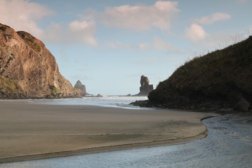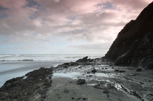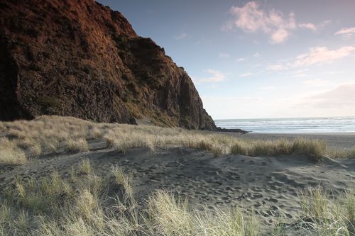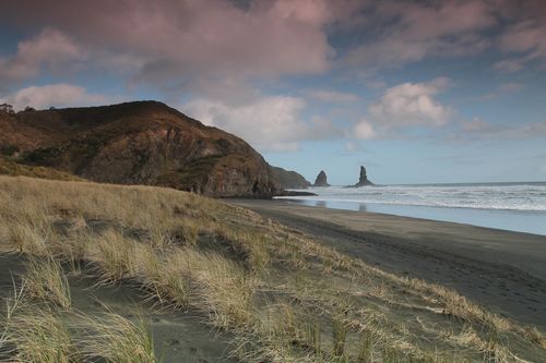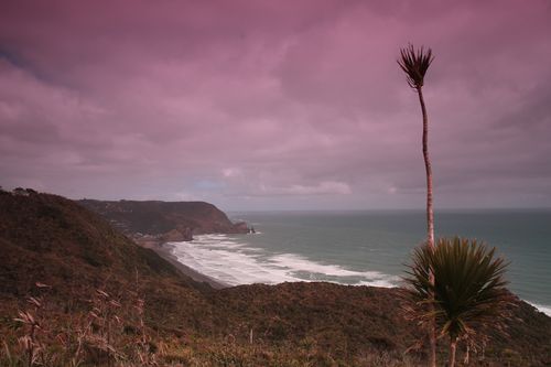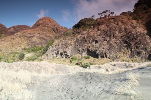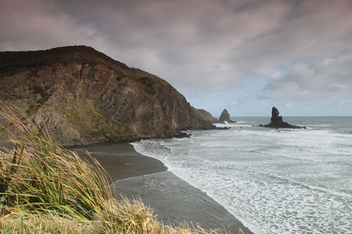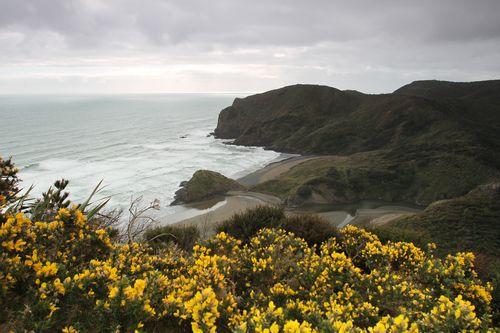 Leider musste die Frau wieder am Wochenende schaffen - da bin ich mal raus zum Anawhata Beach gefahren, der ist in der Nähe von Piha an der Westküste und ziemlich weit ab von der Laundstraße. 20min pure Gravel Road bis zur Bucht.